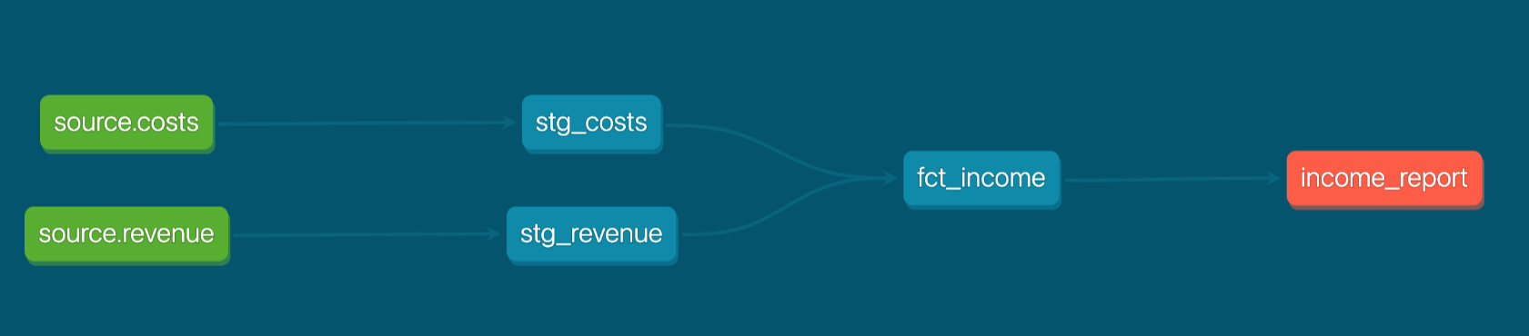 to join in the seed file to determine which versions are “correct”. Her new DAG looks like this, where int_income_history